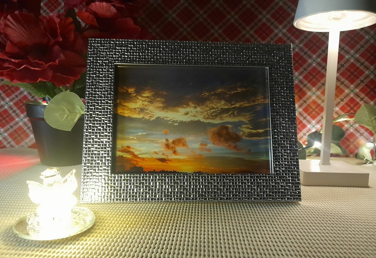Sprzedam moje prace artystyczne, mojego autorstwa w postaci zdjęć i grafiki, wstawione w obrazach ze szkłem, podstawką na biurko, lub do zawieszenia na ścianie w dowolnym rozmiarze na życzenie klienta.1 szt. rozmiar 10×15 cena 35 złotych.